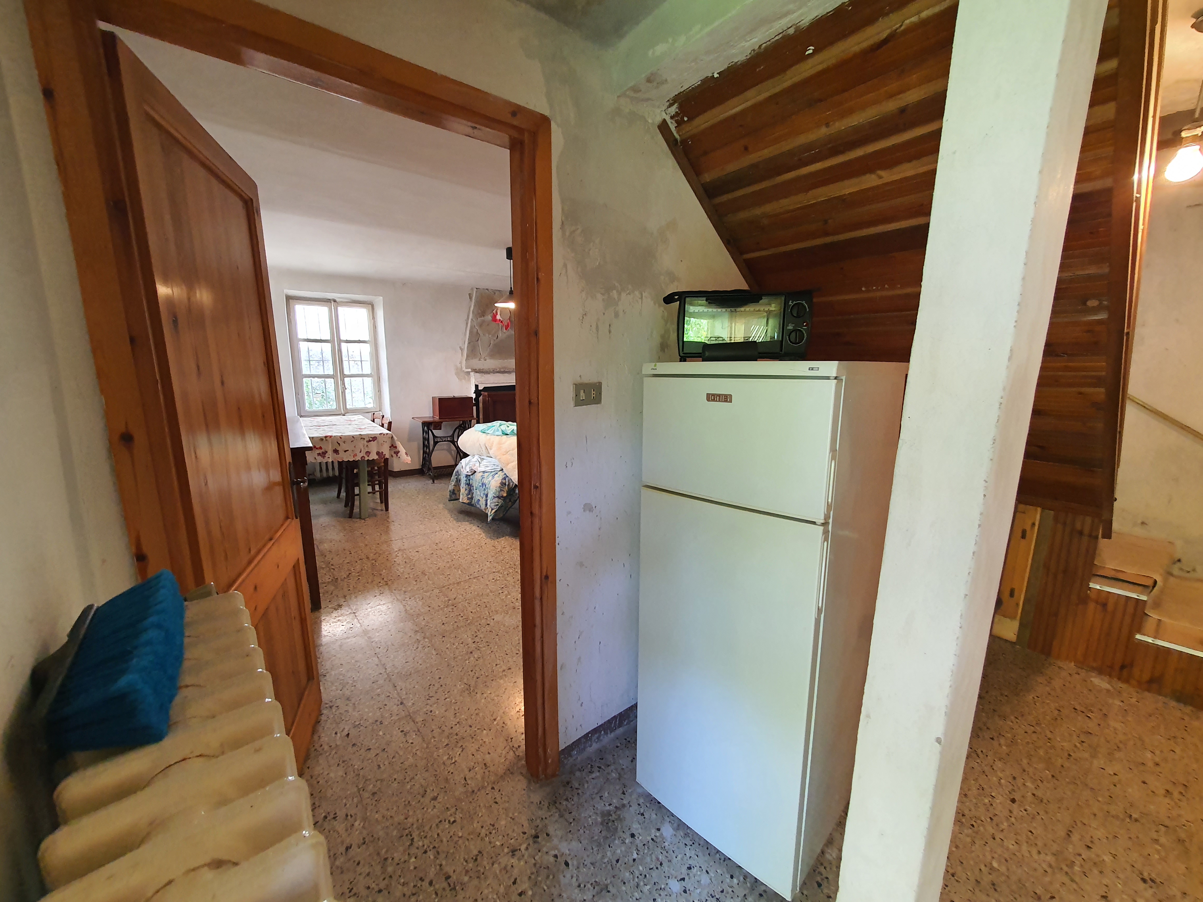 • Primo piano: ingresso con angolo cottura, soggiorno, magazzino e bagno;