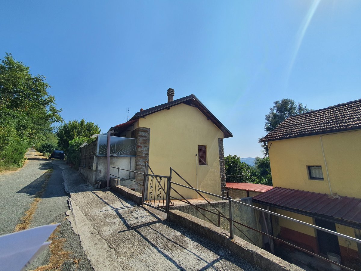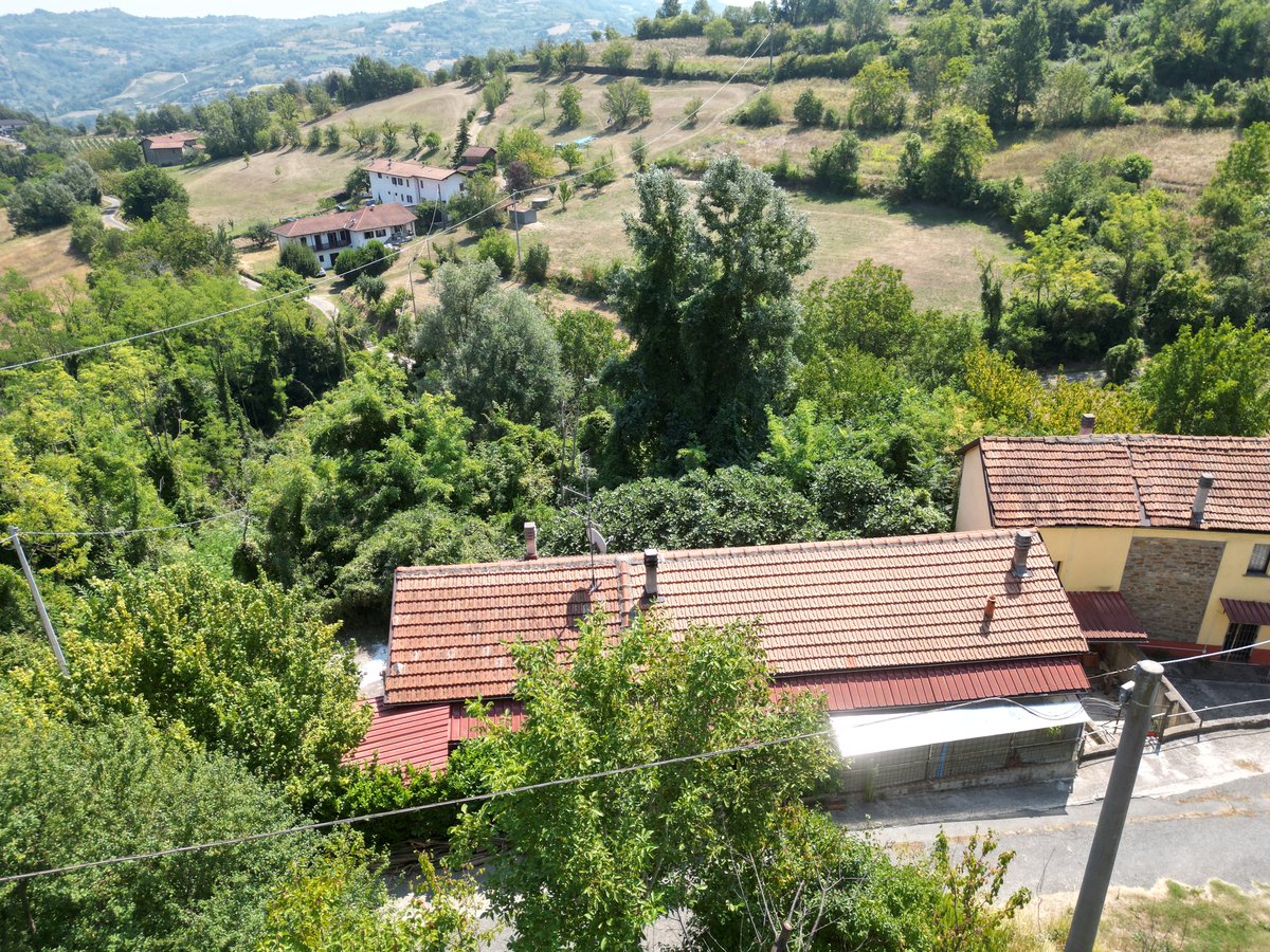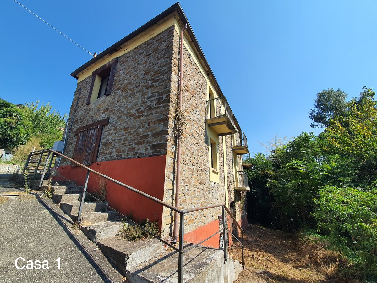 In vendita una proprietà composta da due case in pietra, situate molto vicine tra loro, con terreno di circa 1,7 ettari in campagna a Monastero Bormida (AT).