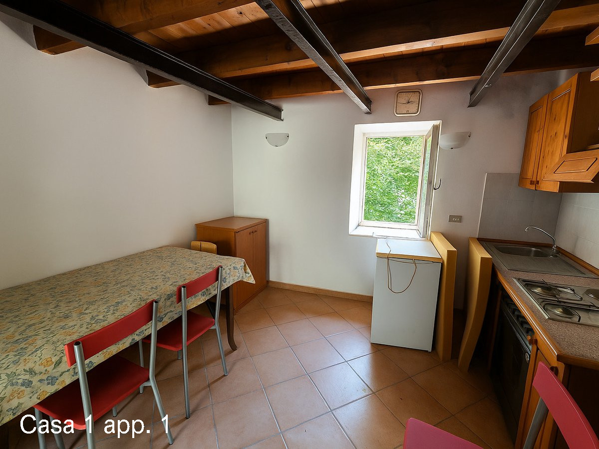 Casa 2 (superficie circa 130 m²): soggiorno, cucina e una camera al piano terra; locale di sgombero, una camera e una sala al piano seminterrato.