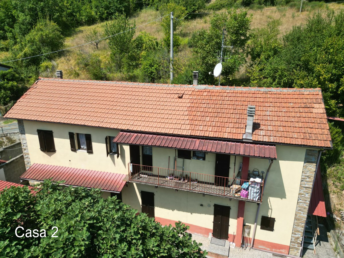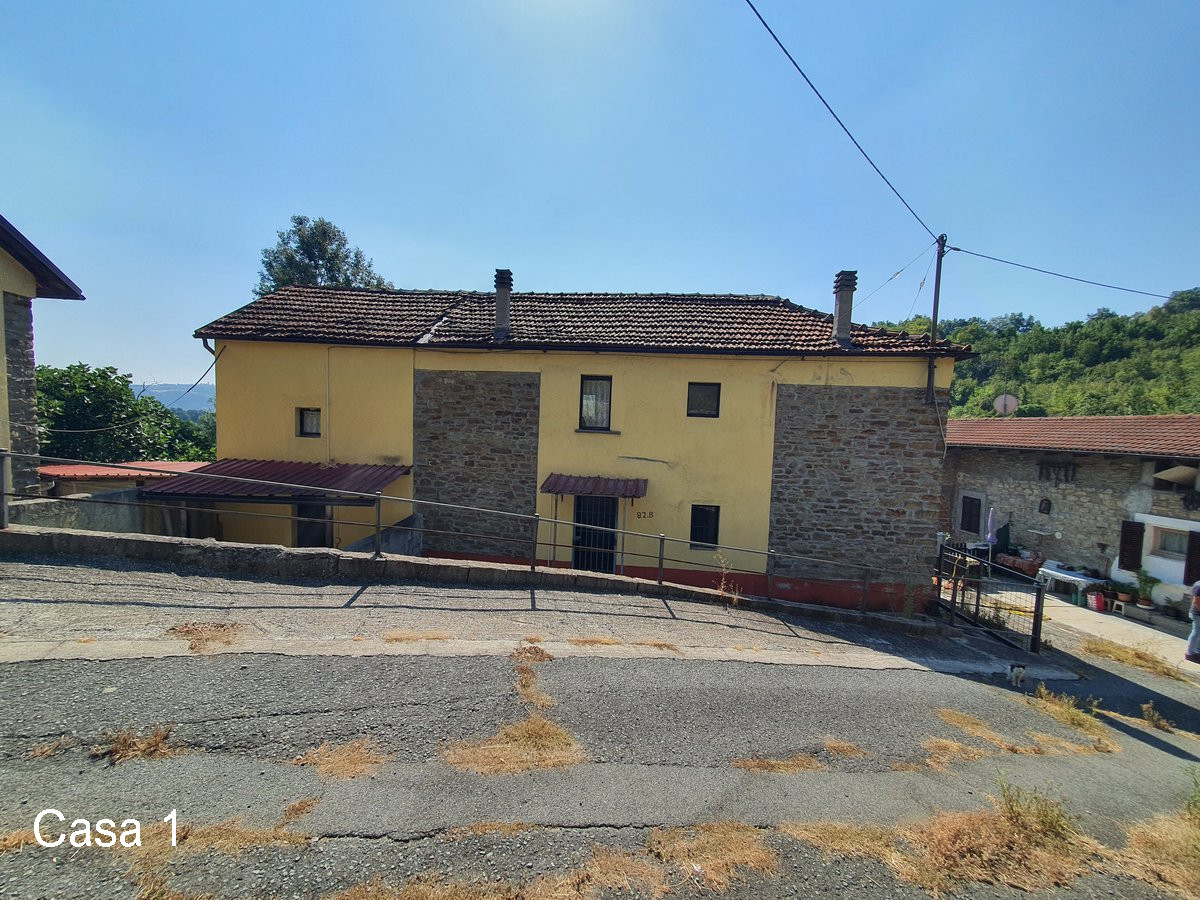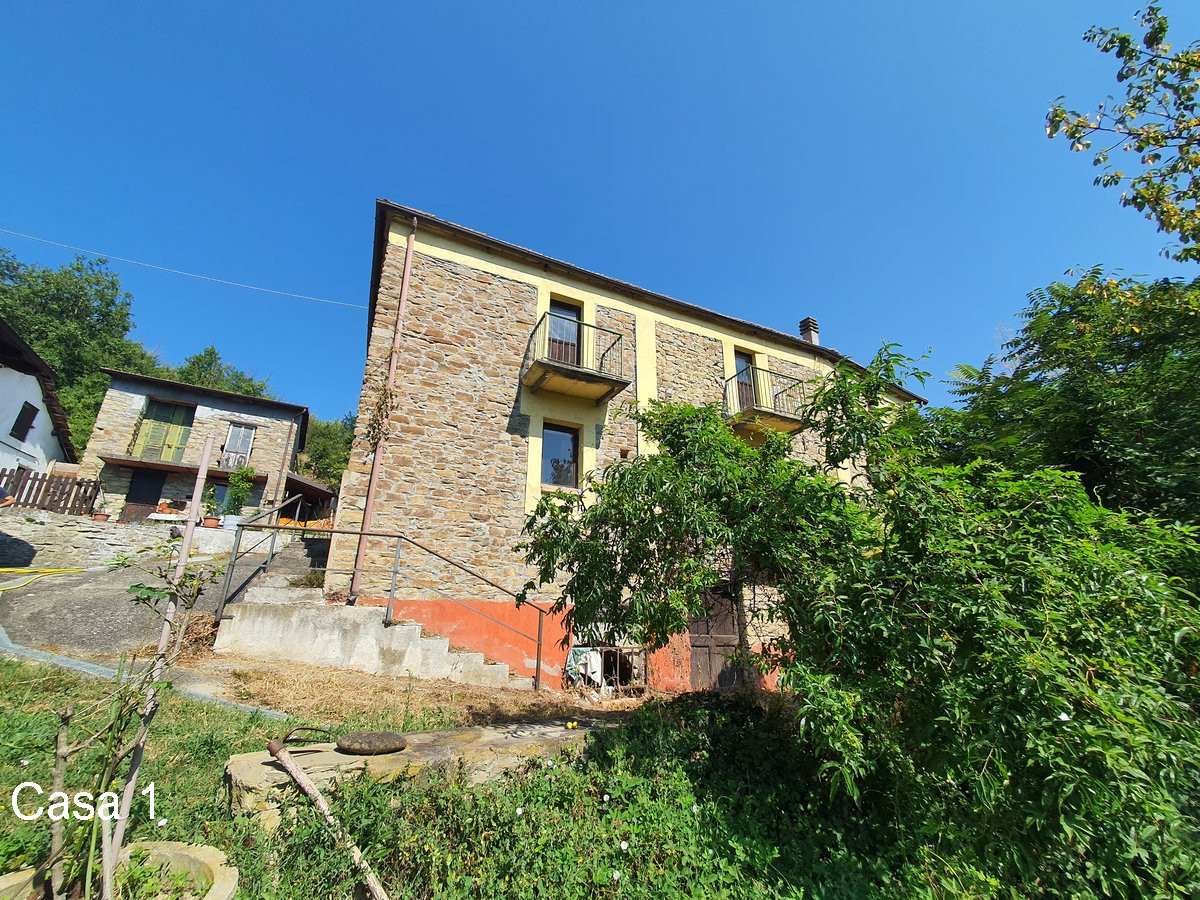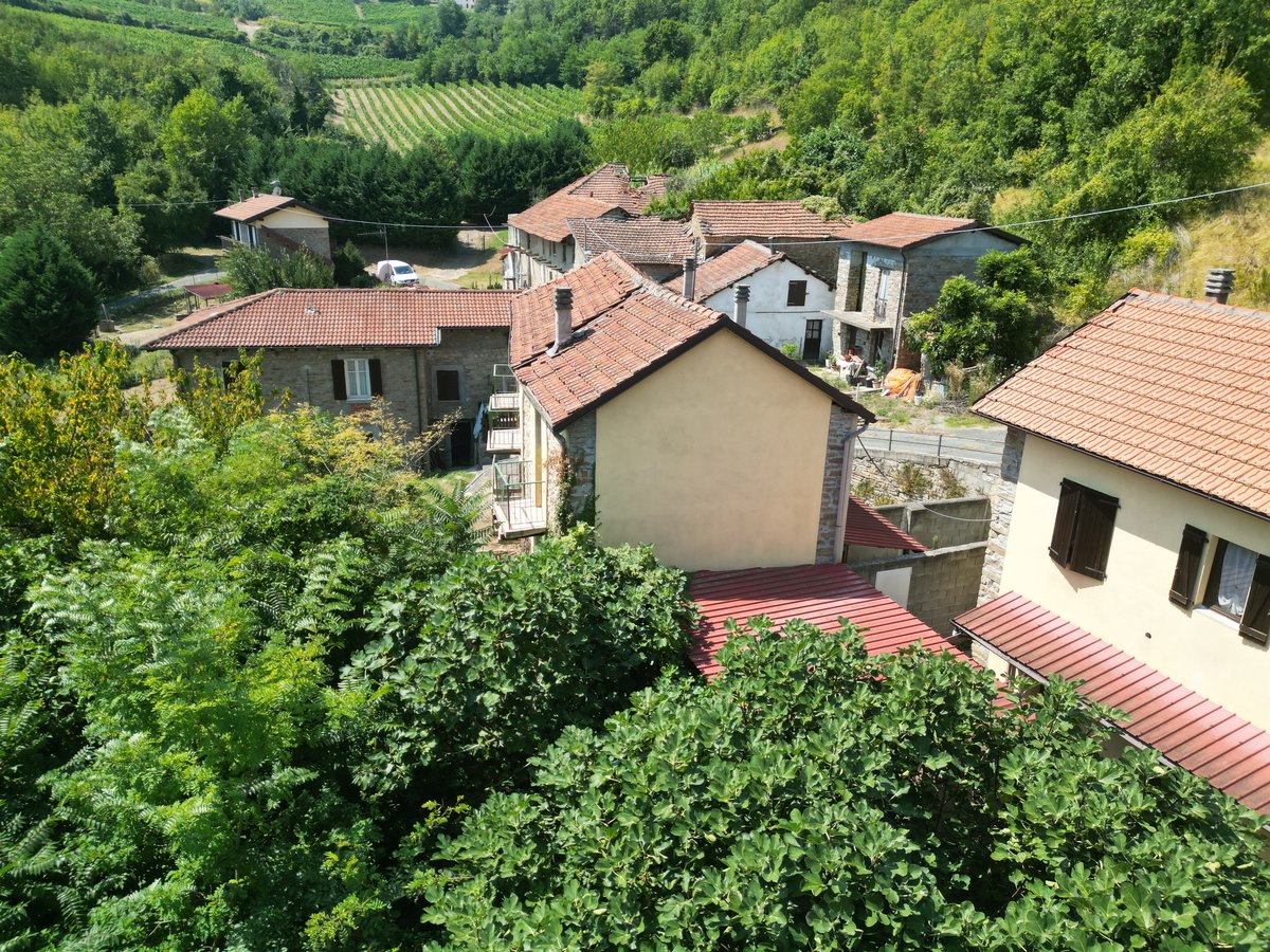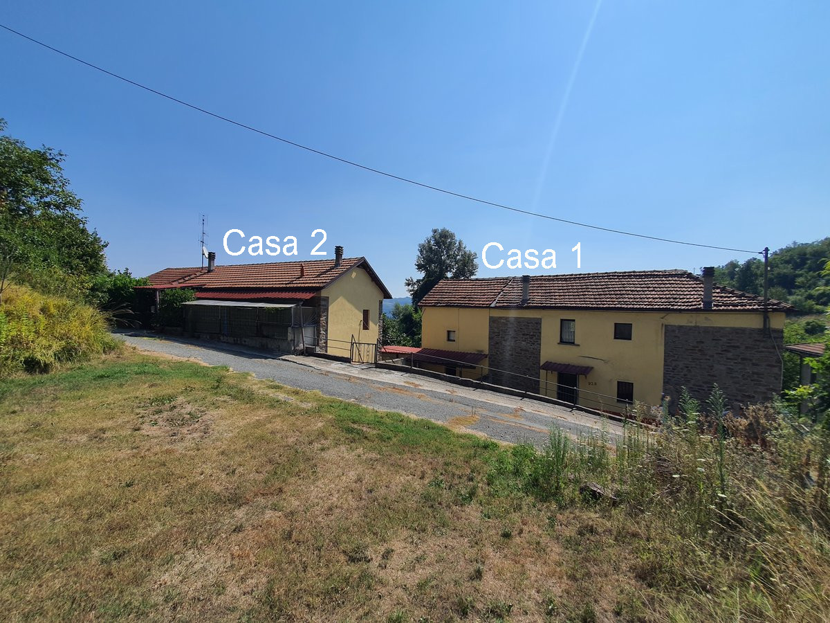 In vendita una proprietà composta da due case in pietra, situate molto vicine tra loro, con terreno di circa 1,7 ettari in campagna a Monastero Bormida (AT).