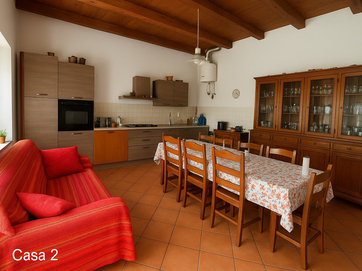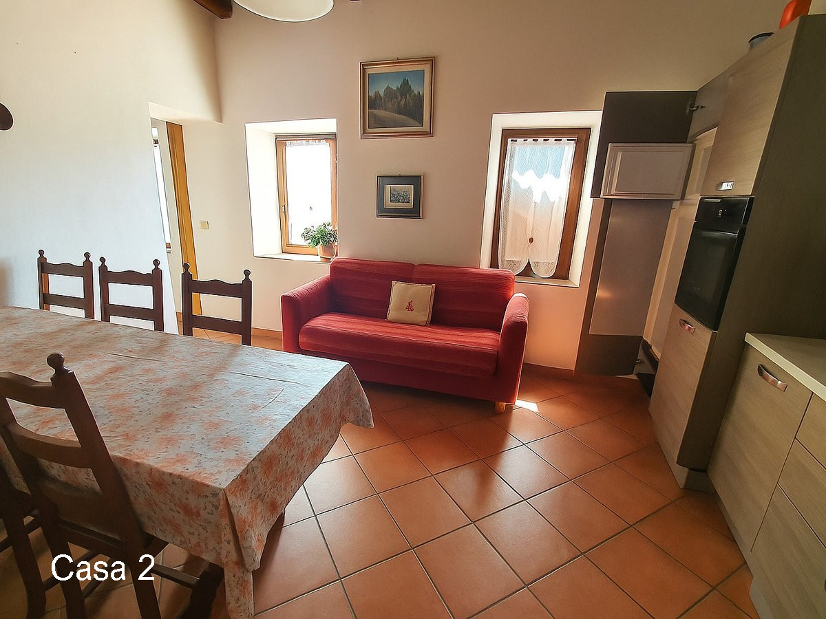 Casa 2 (superficie circa 130 m²): soggiorno, cucina e una camera al piano terra; locale di sgombero, una camera e una sala al piano seminterrato.
