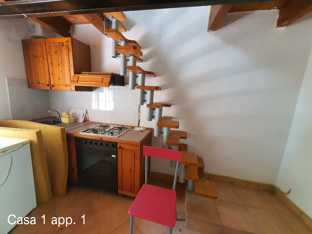 Appartamento 1 (circa 25 m²): soggiorno con angolo cottura al piano terra e una camera al primo piano.