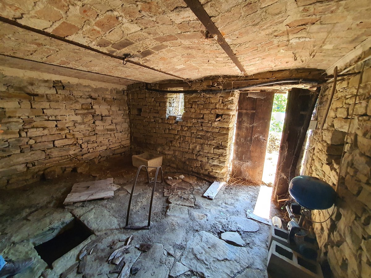 Appartamento 2 (circa 100 m²): soggiorno e cucina al piano terra; due camere da letto e un bagno al primo piano; cantina e pozzo al piano seminterrato.